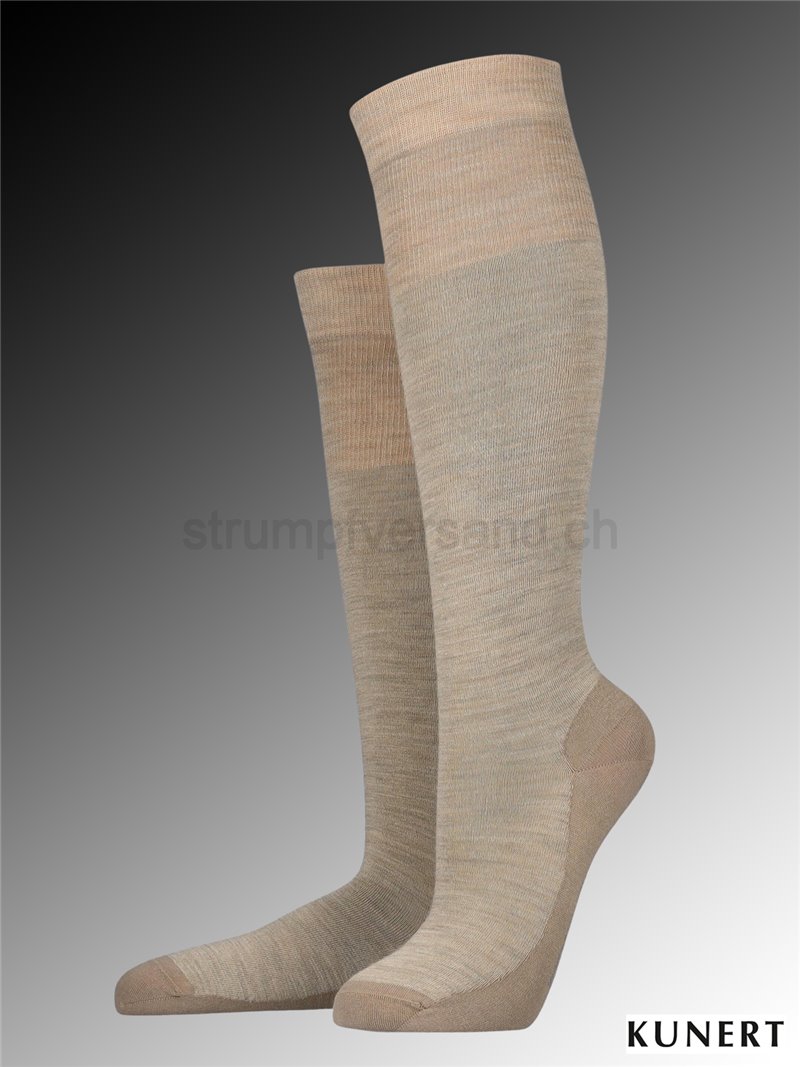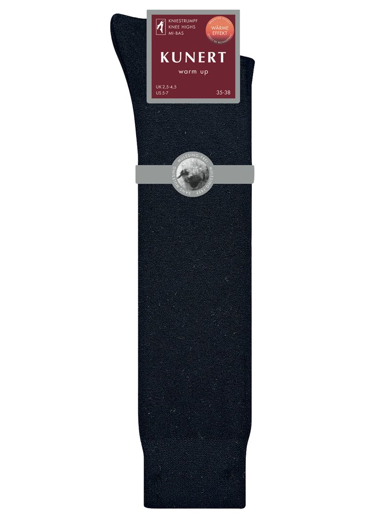 Nie mehr kalte Füsse! Die WARM UP Strick-Kniesocken schenken wohlige Wärme dank mulesingfreier, wärmender Wolle und einem besonders hohen Wollanteil. Sohle und Ferse sind mit der innovativen, aktiv wärmenden KUNERT Warm Fiber ausgestattet, welche die Wärme optimal isoliert. Ein druckfreier Komfortbund und die perfekt sitzende, ebenfalls druckfreie Spitze sorgen für maximalen Tragekomfort - den ganzen Tag lang. Ideal für kühle Tage!