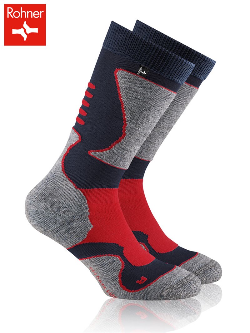 Diese Kindersocken von Rohner bieten perfekten Schutz und Komfort dank einer gezielten Polsterung und verstärktem Schienbeinbereich. Durch den hohen Anteil an Merinowolle überzeugen sie mit guten Wärmeeigenschaften. Des Weiteren sind die Wintersocken thermo - und feuchtigkeitsregulierend für warme und trockene Kinderfüsse den ganzen Tag. Im Fessel- und Ristbereich haben sie eine Elastzone und sorgen so für optimalen Halt beim Austoben im Schnee. Die anatomische Passform und die gekettelten Fussspitzen helfen Druckstellen und Reibungen zu vermeiden.